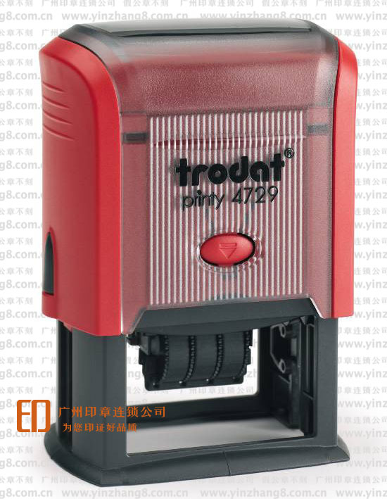 廣州印章連鎖專業制作各類日期印章,日期印章制作類型有方形,圓形,橢圓形,多邊形,長方形等,有自動和半自動兩種款式等各類規格型號尺寸都可選擇制作。廣州印章連鎖智匯精湛印章制作技術,日期印章制作采用全新的線條設計理念,所有日期印章配件采用進口橡膠制作,合理的日期印章架構設計能使日期印章更堅固,使用更方便,印章面更是使用特殊的耐油橡膠精制而成,能達到耐油墨,耐腐蝕,經久耐用,日期印章蓋印印跡更清晰。