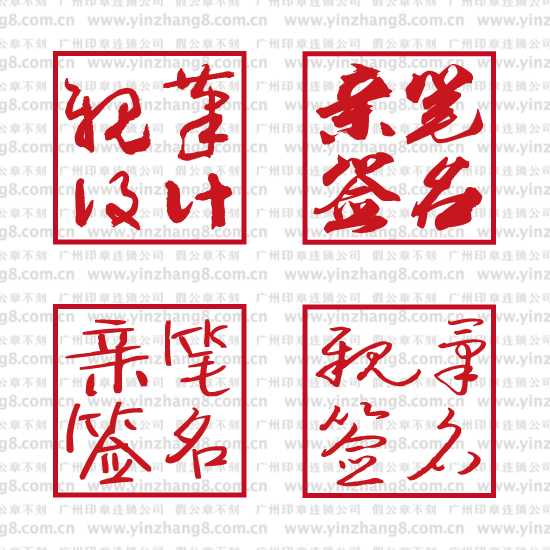 廣州印章連鎖專業(yè)生產(chǎn)的簽名類印章有:用自己頭像設(shè)計(jì)的頭像印章,掃描自己親筆簽名的簽名章,還有經(jīng)過我們設(shè)計(jì)制作的特殊字體簽名私章。這些印章能方便快捷代替親筆簽名及傳達(dá)個(gè)人信息。親筆簽名章及頭像印章具有讓人無法模仿的獨(dú)特防偽印跡,在傳達(dá)信息時(shí)能“章”顯自我,讓人過目不忘記憶深刻,還能提高工作效率。