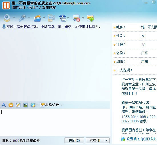 跟顧客的溝通對我們廣州刻章公司來說非常重要。廣州印章連鎖一直做官網的刻章用戶體驗,一直在經營讓顧客心悅的合作,一直在營造快捷愉悅的溝通。溝通時,廣州刻章顧客都習慣用我們網頁左側的在線QQ來咨詢刻章相關事宜,有顧客至近發現用QQ所發的臨時會話信息我們收不到。各種系統版本的QQ都會有缺陷,第三方軟件有缺陷我們也沒辦法,只能等第三方軟件修補漏洞更新版本,才能讓臨時會話不丟失信息。